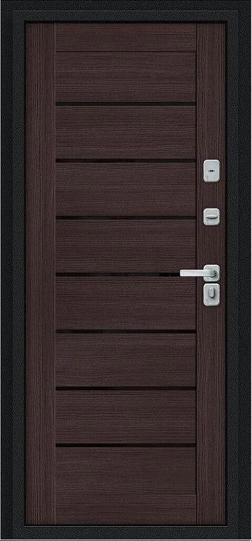 Дизайнерская входная Дверь Браво Thermo Техно Д2/BChrome Букле черное/Wenge Melinga класса Люкс с несколькими листами стали, звукоизоляцией и теплоизоляцией. Утепленный короб и полотно защитят от сквозняков и шумов. Модель не только надежная, комфортная, защищенная и высочайшего качества, но и очень красивая! Будет отлично сочетаться с интерьером дома, квартиры или офиса. Сейчас действует выгодное предложение по цене: 57 617 руб.